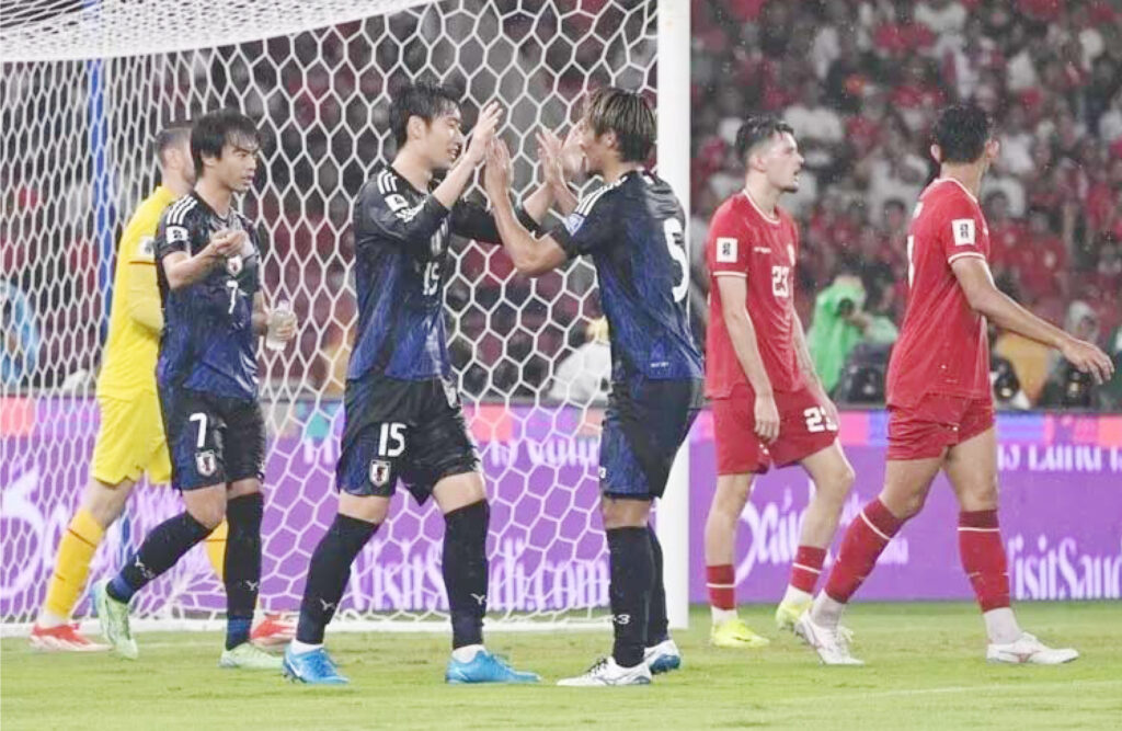 Diperkuat pemain-pemain ternama seperti Wataru Endo (Liverpool), Takumi Minamino (AS Monaco), Kaoru Mitoma (Brighton and Hove Albion) dan Daichi Kamada (Crystal Palace), Jepang mengurung pertahanan Indonesia untuk mendapatkan gol.