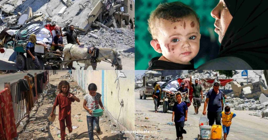 Menurut IOM, sekitar 1,9 juta orang, atau 90 persen dari populasi Gaza, terpaksa mengungsi.